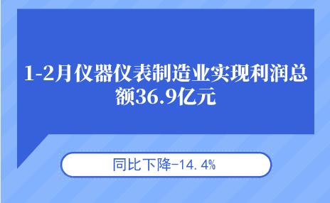 3月27日,国家统计局发布了2019年1-2月份全国规模以上工业企业利润增长状况。1-2月份,全国规模以上工业企业实现利润总额7080.1亿元,同比下降14.0%。其中,仪器仪表制造业实现利润总额36.9亿元,下降-14.4%。